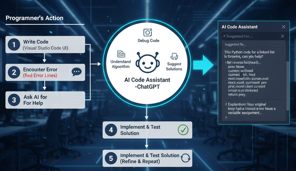 - عیب یابی و اشکال زدایی همراه با تجزیه و تحلیل دقیق رفتار کد با ابزارهای هوش مصنوعی برای کدنویسی