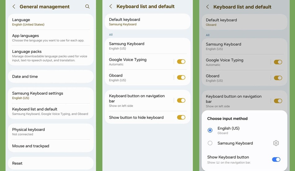 همان طور که اشاره شد، تغییر زبان رابط کاربری گوشی و تغییر زبان گوشی به فارسی با فارسی کردن کیبورد متفاوت است و هر کدام مسیر جداگانه ای دارند. برای اضافه کردن زبان فارسی به کیبورد سامسونگ مراحل زیر را طی کنید: