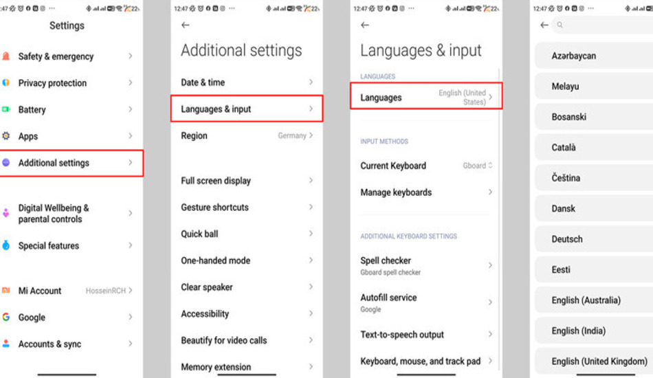 برای تغییر زبان گوشی شیائومی به فارسی، مراحل بسیار ساده و یکسانی برای همه مدل ها از جمله ردمی، پوکو و خود شیائومی وجود دارد که تنها کافی است آن ها را به ترتیب دنبال کنید. ابتدا وارد بخش تنظیمات (Settings) گوشی خود شوید که معمولاً از طریق آیکون چرخ دنده در صفحه اصلی یا منوی اپلیکیشن ها قابل دسترسی است. پس از آن، باید گزینه ای با عنوان Additional settings را پیدا و انتخاب کنید. این بخش شامل تنظیمات اضافی و زبان می باشد. در مرحله بعد، وارد قسمت Language & input شوید که معمولاً داخل تنظیمات اضافی قرار دارد. در این صفحه، گزینه ای با نام Languages خواهید دید که مربوط به انتخاب زبان دستگاه است. وقتی وارد این بخش شوید، لیستی از زبان های موجود به نمایش در می آید. در اینجا کافیست زبان فارسی را از لیست انتخاب کنید تا بتوانید دستگاه خود را به زبان مادری تان داشته باشید.