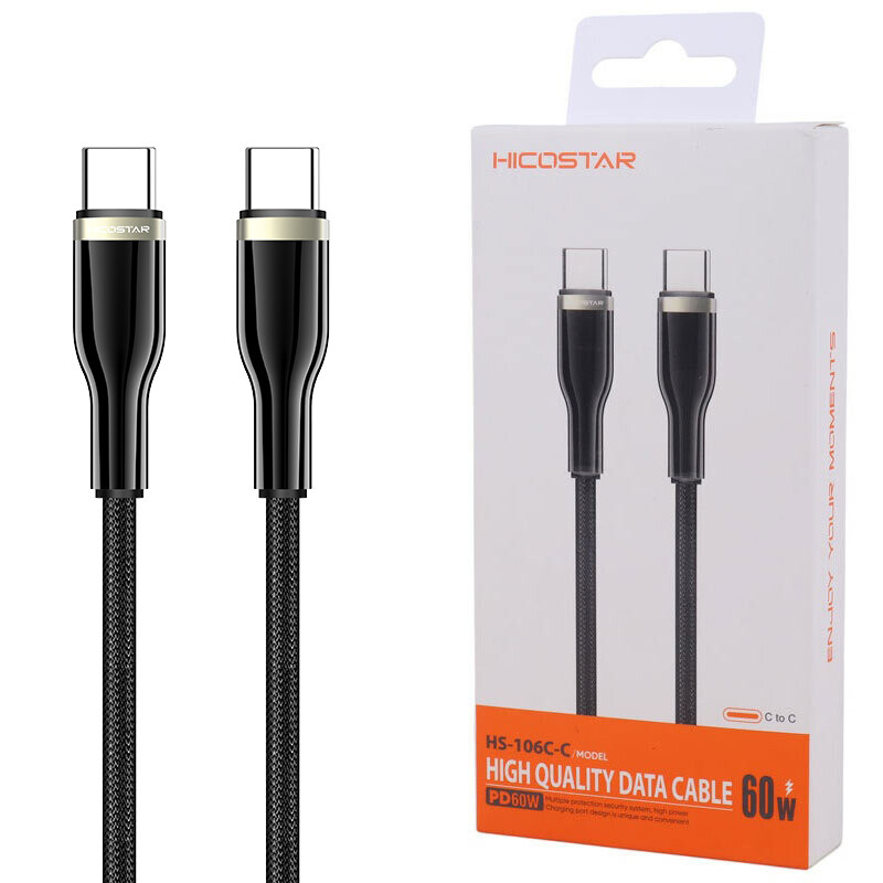 کابل شارژ سریع تایپ سی به تایپ سی Hicostar مدل HS-106C-C PD با طول 100 سانتی متر